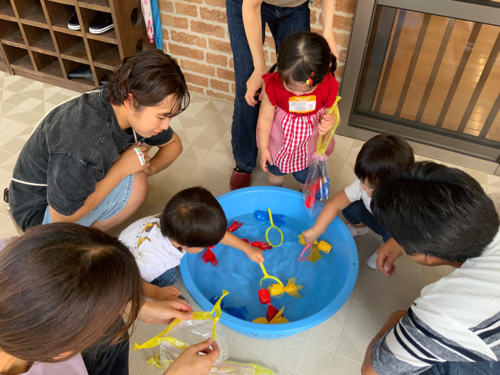 おみやげに、金魚すくいもしました。ポイをつかって自分で上手に掬うことができていました。