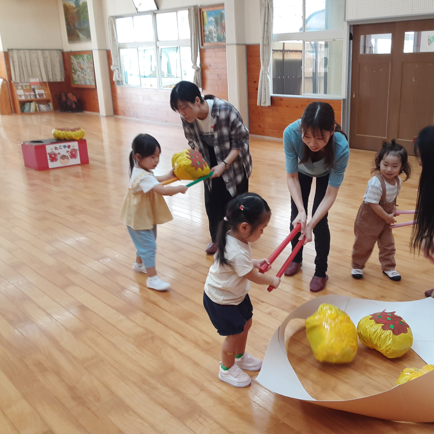 最初の種目は玉入れ。ダンボールに向かってどんどん投げていたら、数えるのが大変な程、たくさん入っていました。