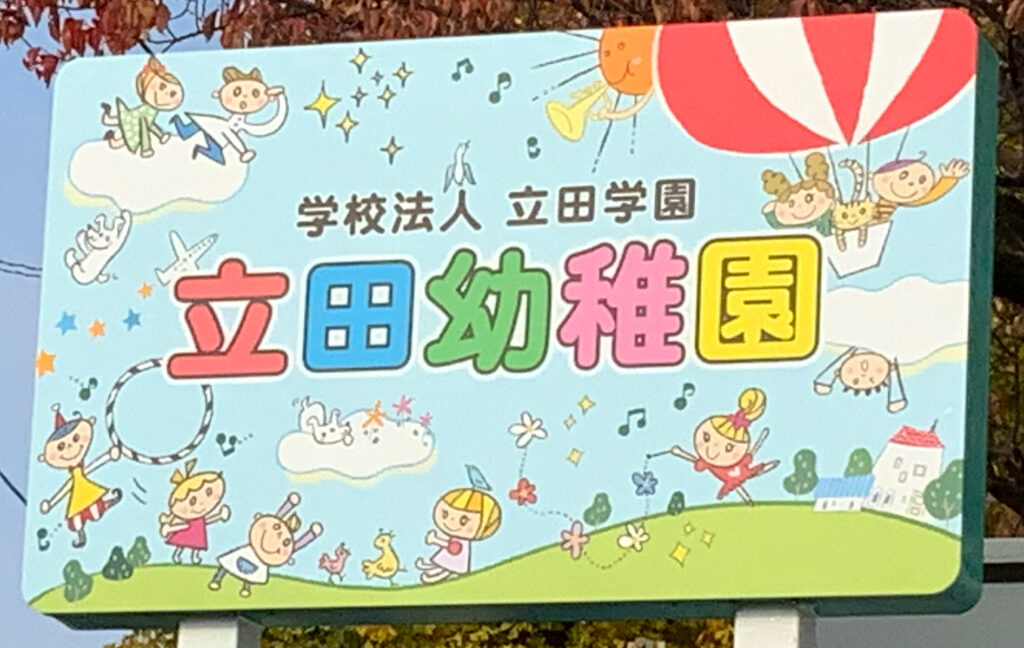 デザインを卒園児の保護者の方にお願いして、立田幼稚園の元気な雰囲気が伝わる楽しくて明るい看板になりました。