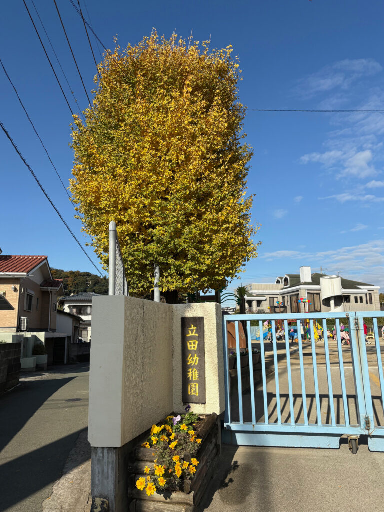 立田幼稚園のシンボルツリーのイチョウが黄葉しました。