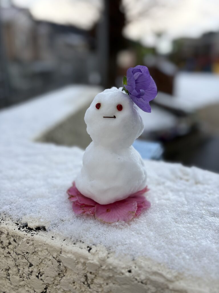 朝、カーテンを開けたら、雪がしんしんと降っていました。